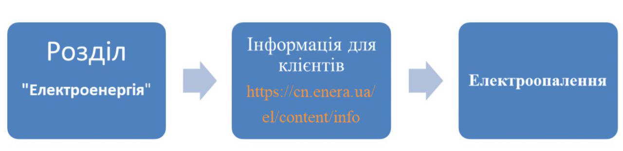 Для індивідуальних та колективних побутових споживачів в будинках та квартирах з електроопаленням діє спеціальний тариф у період з 1 жовтня по 30 квітня. Інормація про тариф, алгоритм дій споживачів для підтвердження обладнання житлового будинку електроопалювальною установкою в установленому порядку та можливості застосування фіксованої ціни на електричну енергію розміщено за посиланням: https://cn.enera.ua/el/content/info.
