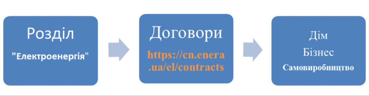 Перш ніж стати клієнтом ТОВ «ЕНЕРА ЧЕРНІГІВ» або змінити умови обслуговування, ви можете ознайомитися з правовою базою прямо на сайті. Це забезпечує повну юридичну прозорість відносин. Укладання договору про постачання електроенергії побутовому споживачу (типовий договір, заява-приєднання), укладання договору про постачання електричної енергії юридичному споживачу , укладання договору про постачання електричної енергії за механізмом самовиробництва) – необхідна інформація розміщена за посиланням https://cn.enera.ua/el/contracts